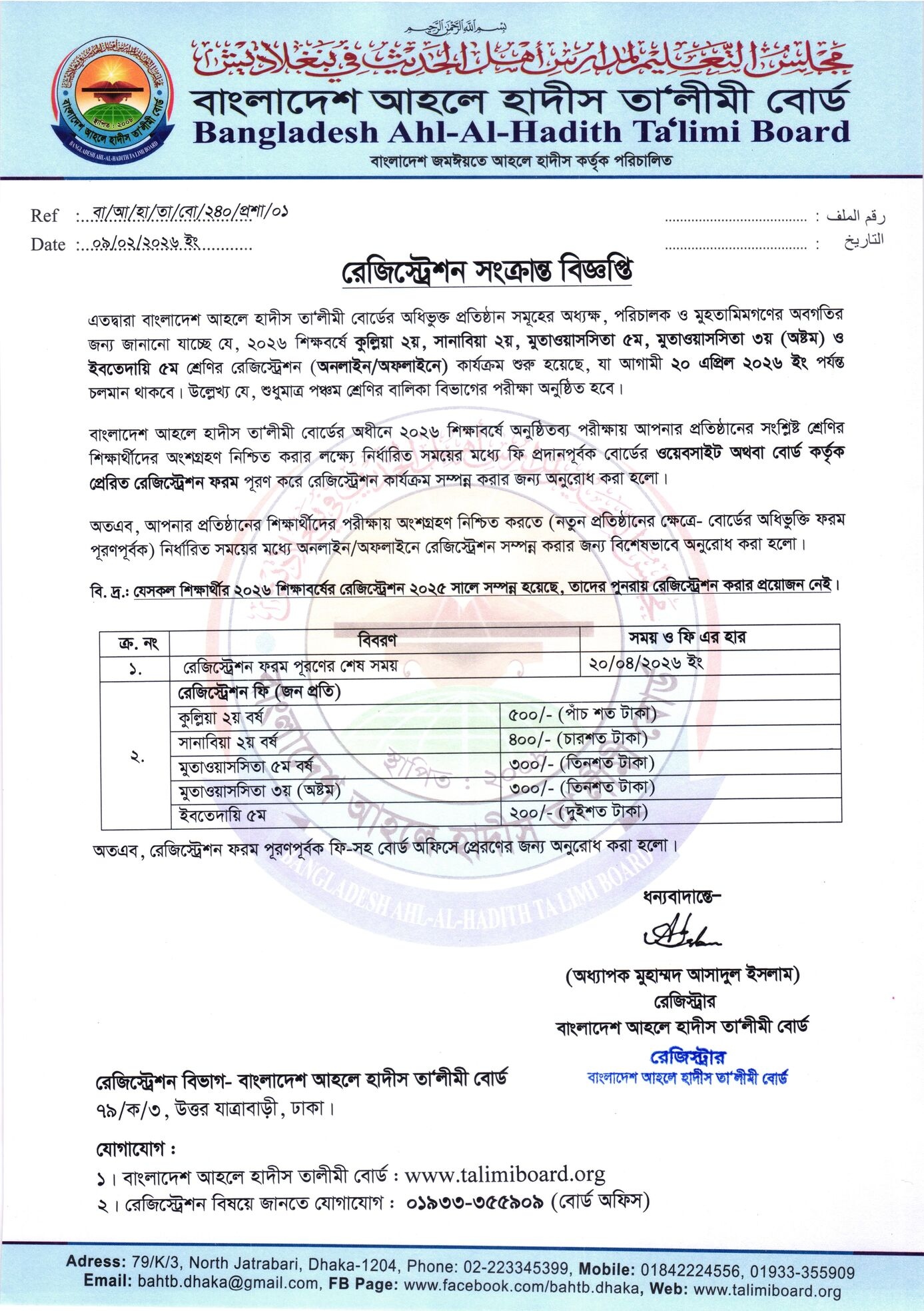 কুল্লিয়া, সানাবিয়া, মুতাওয়াসসিতা, অষ্টম ও পঞ্চম শ্রেণির পরীক্ষার রুটিন-২০২৫