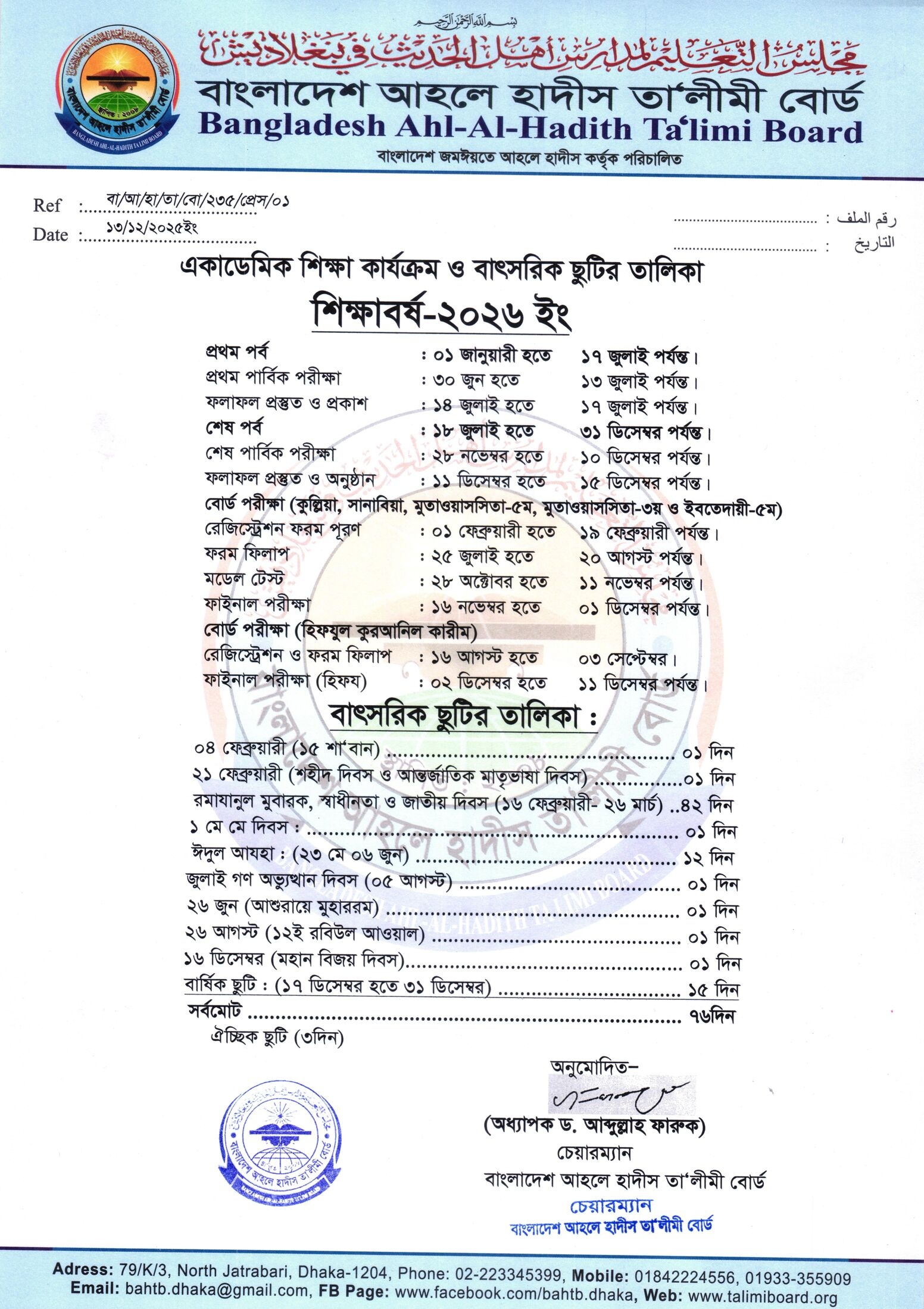 📢একাডেমিক শিক্ষা কার্যক্রম ও বাৎসরিক ছুটির তালিকা শিক্ষাবর্ষ- ২০২৬!